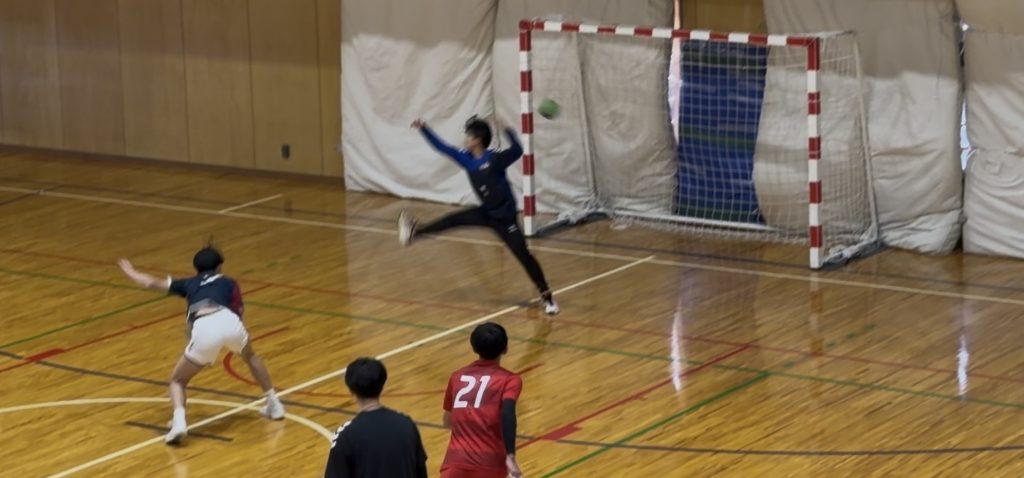 部長が7mスローを決めてくれました