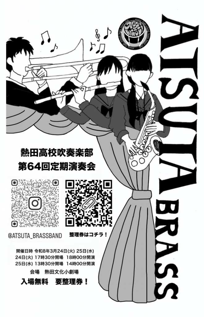 次回の本番は3/24,25に熱田文化小劇場で開催されます第64回定期演奏会となりました。25日の整理券は完売しております。24日の整理券も残りわずかとなっておりますので、ぜひお早めにお申し込みください。